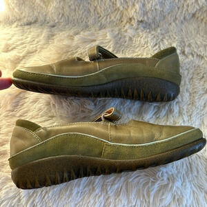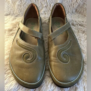 *EUC* Naot Green 5 36 Suede Leather Mary Jane Swirl Design Offset Strap