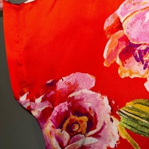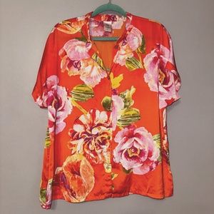 EUC Natori Short Dolman Sleeve Floral Rose Pajama Top Button Front Size Medium