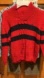 Like new. Worn once. Red sweater with navy stripe, navy and white plaid button down dress shirt, Dark khaki corduroy w/ snap and zipper closure. 5 pockets. 27” long 12” adjustable waist