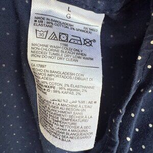 Navy button down with polka dot pattern from Old Navy. Men's size large. 98% cotton, 2% spandex/elastane.
