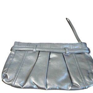 Neiman Marcus wristlet clutch in a sleek silver finish. Ideal for evening events and casual outings alike.