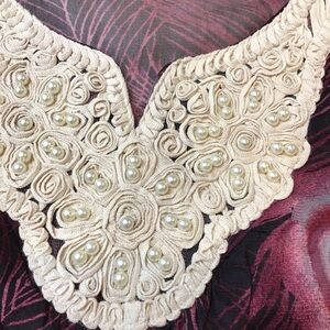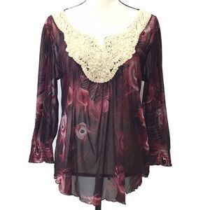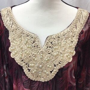 EUC New Directions Peacock Feather Print Beaded Blouse