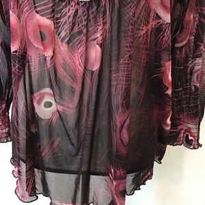 - lightweight, semi-sheer fabric with beautiful peacock feather all-over print.