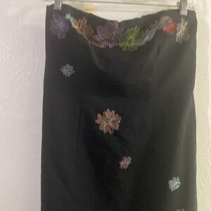 EUC New York & Company Embroidered Floral Black Strapless Dress