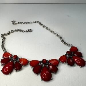 EUC New York & Company Red and Silver Statement Necklace Evening Cocktail Party