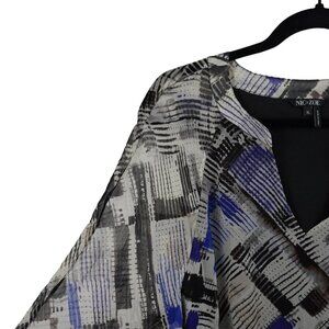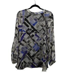 EUC Nic+Zoe Multicolored Split Neck Geometric Print Long Sleeve Pullover Tunic X