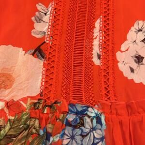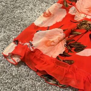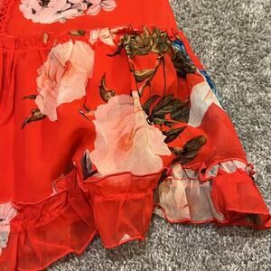 EUC Nicholas X Revolve Red Floral Silk Mini Dress Size 2 sleeveless ruffle lace