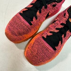 EUC Nike WMNS Flyknit Air Max Total Orange/Black/Pink/Fireberry Running Shoe 9
