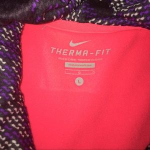 EUC women's Nike therma-fit hoodie in hyper punch and dark purple, with digital type pattern in hood lining and on Nike emblem. Size large but runs more like a medium in my opinion. Fleece lined. Super cozy and warm! Worn just twice. No holes/tears/rips or signs of wear/damage. Retails for $65