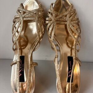 EUC Nina Size 9M Leather Shimmering Gold Strappy Heel shoes