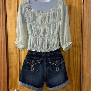 EUC, No Boundaries Women’s Sz 9 Acid Wash Rolled Hem Denim Short, K648
