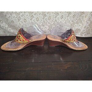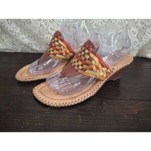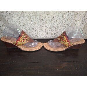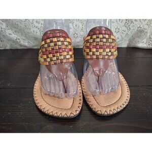 EUC Nurture Brown Leather Checker Weave Wedge Thong Sandals/Sz. 7.5