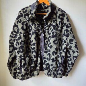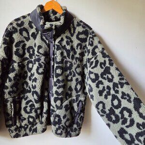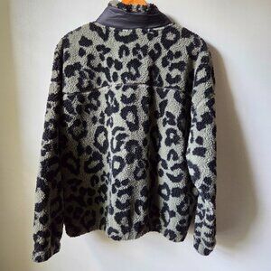 EUC OLD NAVY SHERPA ANIMAL PRINT MOCK NECK BUTTONED SWEATER SIZE XL