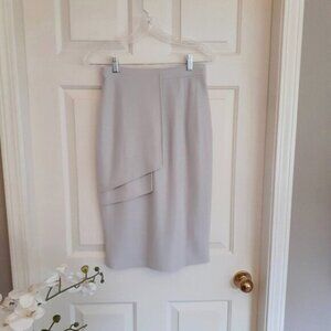 EUC Obakki creamed grey silver wool midi skirt with frill detailing