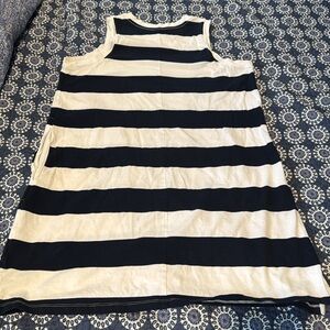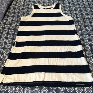 Worn once on vacation. Navy and white striped cotton dress with pockets. Tall sized!