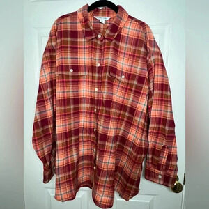 EUC Old Navy Flannel Boyfriend Tunic Shirt, Size 2X (20/22), Orange/red plaid