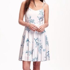 Old Navy White Blue Coral Fit & Flare Dress