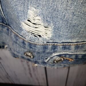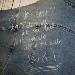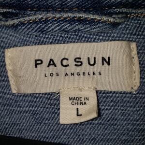Like new, PACSUN jean jacket, Distressed, writing, Super cool oversized 90s styling. Rare! size large, from my smoke-free and pet-free home.