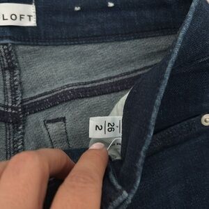 EUC PETITE LOFT HIGH RISE SLIM FLARE JEAN DARK WASH SIZE 2