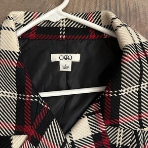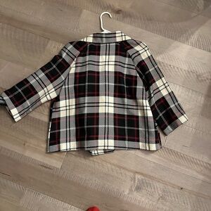 EUC PLAID JACKET IN IVORY RED AND BLACK WITH 3/4 SLEEVES