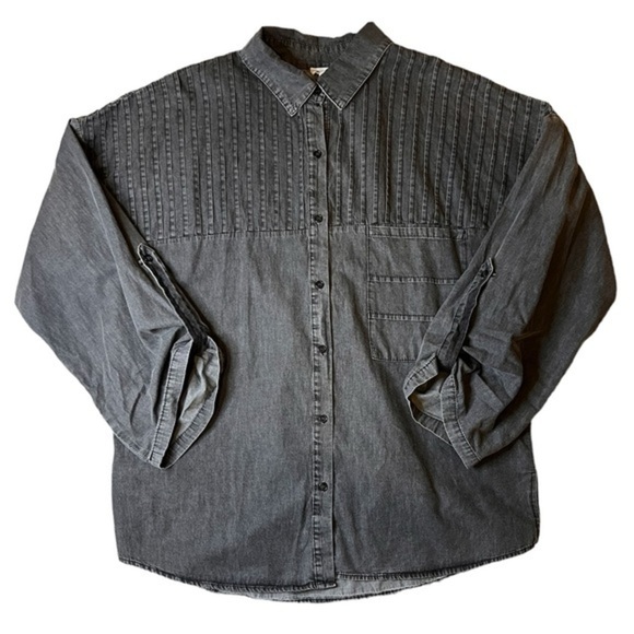 EUC POL by Anthropologie Oversized Distressed Black Wash Button Down Shacket