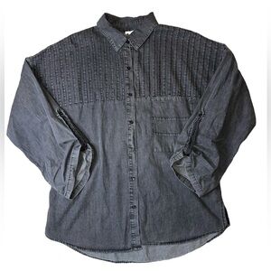 {EUC POL by Anthropologie Oversized Distressed Black Button Down Shacket Small}