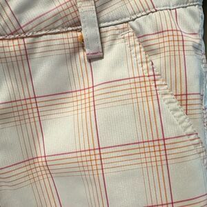 EUC PUMA Youth Boys White Orange Pink Plaid Golf Shorts - Size Large