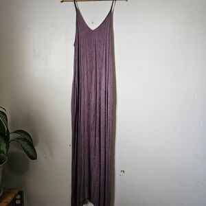 EUC PURPLE DEEP DOUBLE V NECK TANK CRINKLE MAXI DRESS SIZE MEDIUM WOMENS