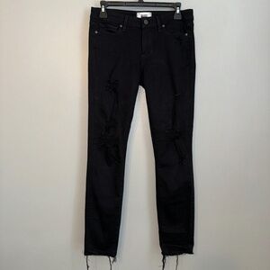 EUC Paige Verdugo Ultra Skinny Black Distressed Raw Hem Jeans Size 28