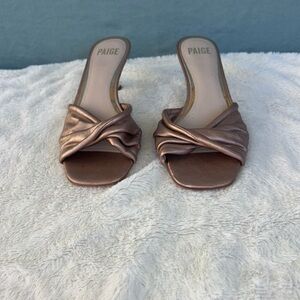 Step out in style with these elegant bronze slide sandals from Paige. Perfect for any occasion, these shoes offer both comfort and sophistication. Excellent pre-owned condition.