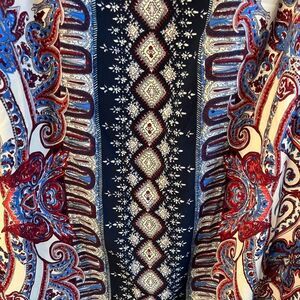 Beautiful print, double layered with a slip underneath. Light and airy. Just throw on and go for any occasion! Add a jean jacket when the weather gets cooler.