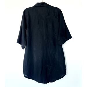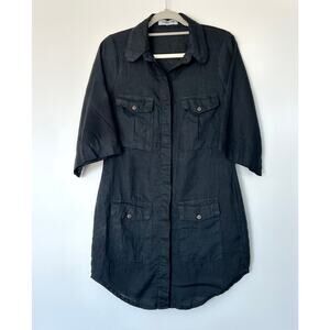 EUC Pampelone Mae Black Linen Utility Dress Sz Small Button Down 3/4 Sleeve Mini