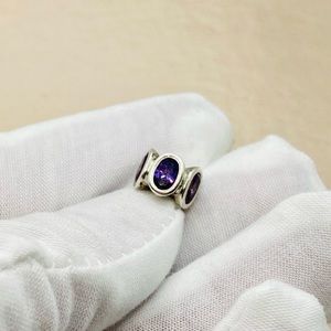 This purple oval light bead has five large cubic zirconia stones set in sterling silver. It will add color and sparkle to your bracelet. This charm can represent February birthdays and pairs well with our purple Murano glass beads.
