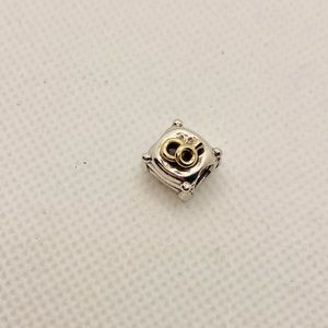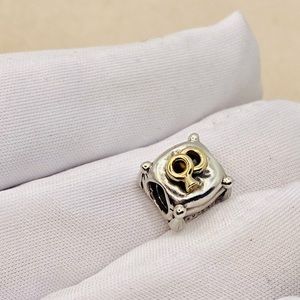EUC Pandora 790549D Sterling Silver & 14k Yellow Gold Romantic Union Wedding Pillow Bead w/ Diamond