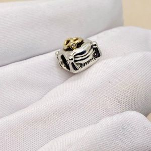 EUC Pandora 790549D Silver & Gold Romantic Union Wedding Pillow Bead w/ Diamond