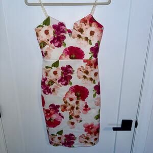 EUC Parisian Collection Floral Bodycon Dress Size 8 Pink Purple White