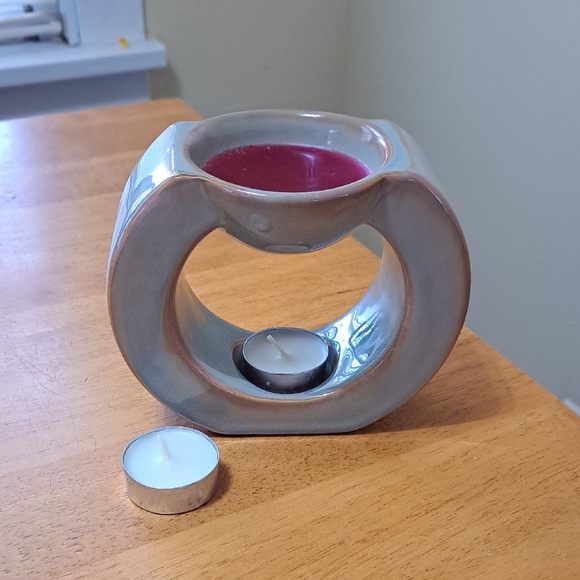EUC Partylite Gaia P9604 Aroma Wax Melt Warmer Sage Green Holiday Trad Modern