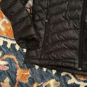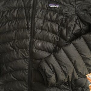 Stay warm and stylish with the Patagonia Women's Black Hooded Jacket. Perfect for outdoor adventures. Small mark at the front. Not noticeable!