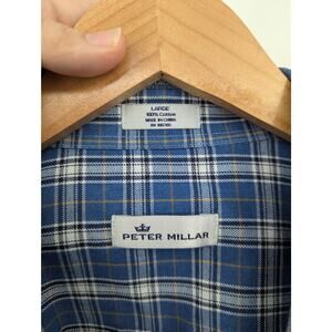 EUC Peter Millar 100% Cotton Blue Plaid Casual Button Down Size Large L