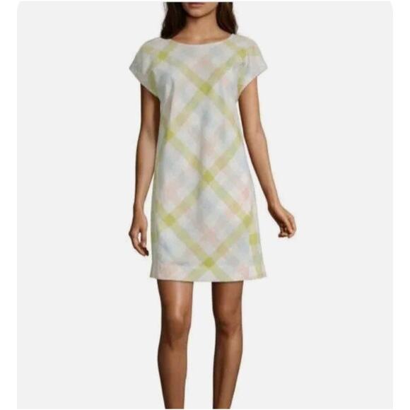 EUC Peyton & Parker Linen Plaid Button Dress Multicolor Size S