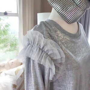 EUC Piazza Del Tempio silver foil ruffle tulle accent sweatshirt