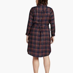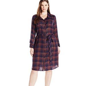 Plus Size Lucky Brand Navy & Gold Shimmer Plaid Shirt Dress
