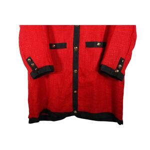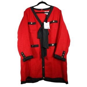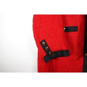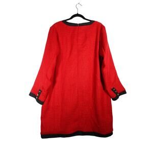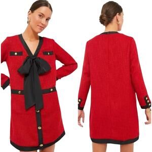 This is a chic and stylish women's dress by Pomander Place in size XXL (2X). The dress features a solid red color with a V-neckline, long sleeves, and a zipper closure. Made of polyester tweed fabric, it has a shift mini dress style. Ideal for various occasions like weddings, parties, or formal events. Perfect for the holiday season, the Coco Tweed Bow Tuckernuck dress offers a classic and preppy look suitable for all seasons.