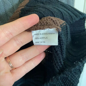 Women’s sweater by Poof Excellence. Sweater is neutral colored with a striped pattern. Made of acrylic knit material. Size medium. Smoke free home!