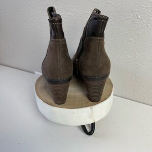 EUC Pre-Loved Beautiful Clarks Womens Brown Leather Heeled Booties Size 7. The heel measures 2 1/2 inches.