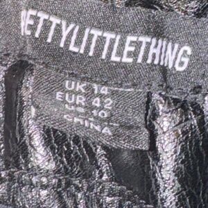 EUC PrettyLittleThing Faux Leather Wide Leg Pants Cut Out Waist Size 10