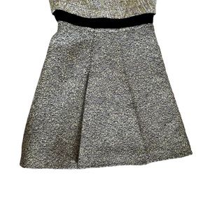 EUC Proenza Schouler lime green textured graphic mini dress with black accents at the arm holes and waist. Green, white, gray pattern. Side zip. Pleating in front, slightly flared skirt. Eye hook closure at back of neck. Thick material, fully lined. Size 4.