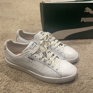 EUC Puma Mens Clyde Natural Star White White Silver Foil