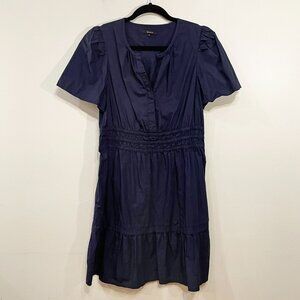 EUC Quince 100% Cotton Poplin Tiered Mini Dress Navy Blue Medium