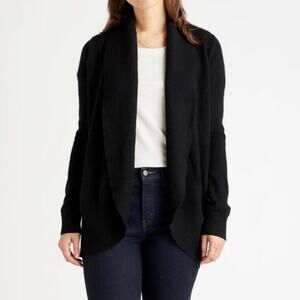 EUC Quince Black Mongolian Cashmere Flutter Open Cardigan Sweater Size XS 1249